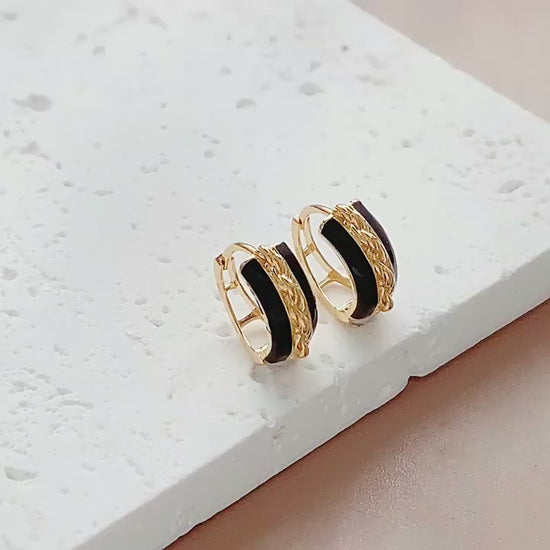 Black and gold fashion Hoop Earrings